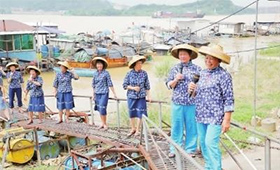 渔船是渔民与江河和谐相处的亲密伙伴,8位渔嫂一字排开站在踏板上,一起高声歌唱《沙口渔之香》。为生活而歌,渔嫂们不但唱出了“新鲜虾仔在唱歌,清蒸几味聚一堂”的丰收景致,还有“乡村今天换新装,小康社区已建成”的宜居环境,以及“家家户户事事兴,有车有银仲有房”的生活愿景。